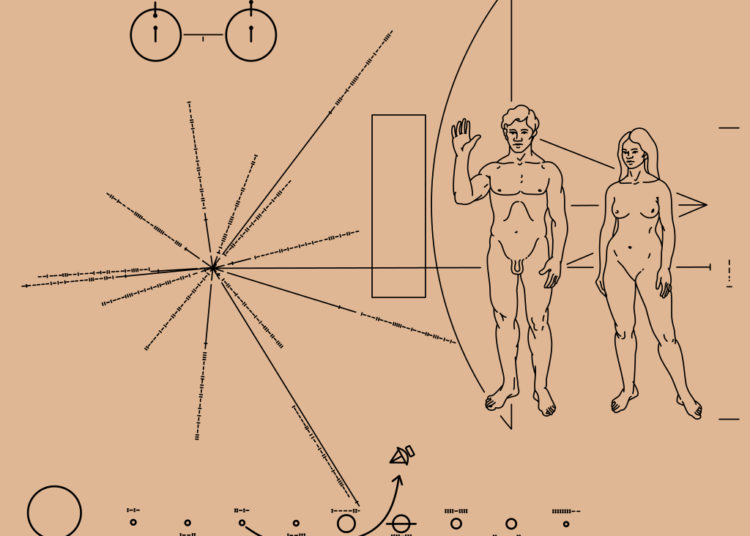 Le sonde Pioneer 10 e Pioneer 11, lanciate dagli Stati Uniti d’America a nome dell’uomo per intero rispettivamente nel 1972 e 1973, contengono un messaggio destinato a eventuali abitatori intelligenti dello spazio siderale, una placca scritta in un linguaggio universale perché contiene anche la chiave della cifratura usata: la posizione relativa del Sole rispetto al centro della nostra galassia, una schematizzazione del nostro sistema solare, un’indicazione della direzione del viaggio intrapreso dalle sonde, l’epoca del lancio delle sonde stesse, uno loro schema e la carta di identità di come l’essere umano è fatto biologicamente: univoco nel suo dimorfismo sessuale pronunciato, accentuato, evidente. Il disegno, celeberrimo, fu realizzato da Linda Salzman, moglie di Carl Sagan (1934-1996), astronomo, divulgatore scientifico e scrittore di fantascienza statunitense, che lo ha ideato e voluto assieme all’astronomo, pure statunitense, Frank Drake, su suggerimento del giornalista britannico Eric Burgess (1920-2005).